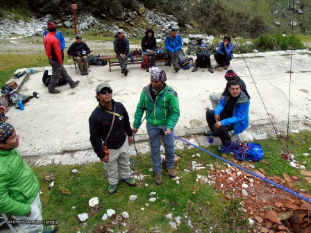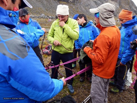 - 08:30 a.m. - 02:00 p.m.: Refuerzo del uso del escalímetro, navegador GPS y Brújula. Identificación de unidades Geológicas, Geomorfológicas y del tipo de glaciares presentes en el área de trabajo. Formación de “Grupos de Trabajo” para ubicación de puntos GPS tanto en mapa como en campo.